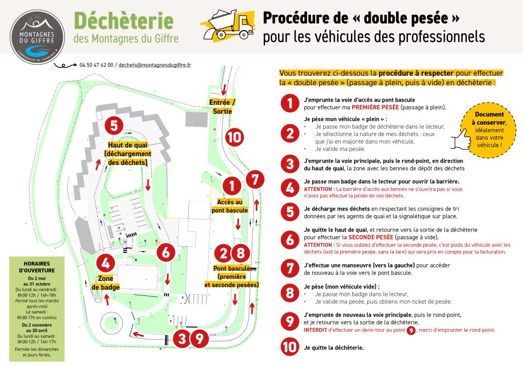 A partir du lundi 28 juillet 2025, la Communauté de Communes met en place la double pesée obligatoire (passage à plein, puis à vide) pour tous les professionnels qui viennent à la déchèterie des Montagnes du Giffre située à Taninges.