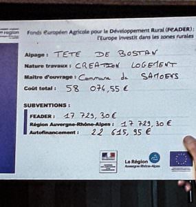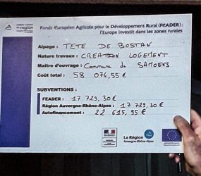 La création de cet abri a été portée par la municipalité de Samoëns, grâce au Plan Pastoral Territorial (PPT) du Haut-Giffre, dispositif animé par la Communauté de Communes. Le coût total des travaux est de 58 000 euros, avec des subventions FEADER / Région Auvergne Rhône Alpes à hauteur de 35 000 euros, et un investissement de la commune de Samoëns de 23 000 euros.