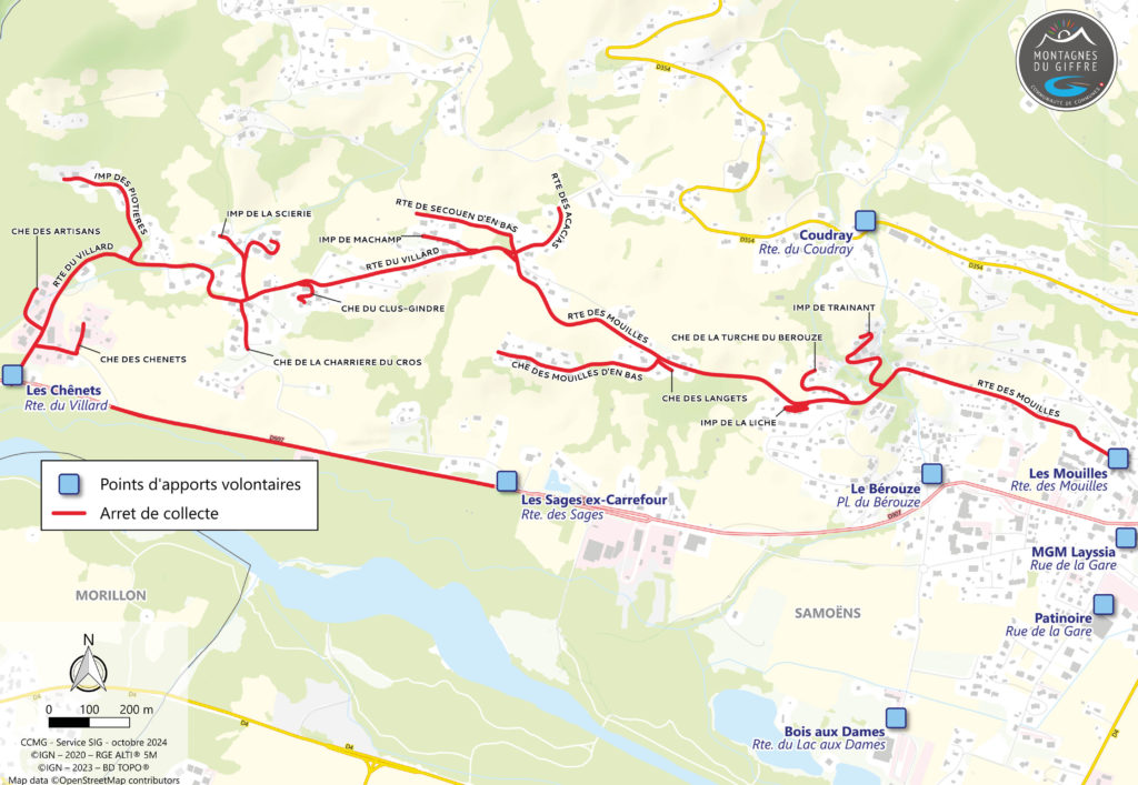 Depuis le 15 NOVEMBRE 2024, le service de collecte des ordures ménagères en bacs individuels (porte à porte) n’est plus assuré à SAMOENS sur les secteurs suivants :