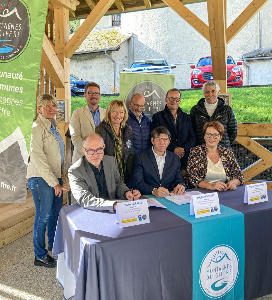 Fin septembre à La Rivière-Enverse, la Communauté de Communes des Montagnes du Giffre (CCMG) a eu le plaisir de signer la nouvelle Convention Territoriale Globale (CTG) avec la Caisse d’Allocations Familiales (CAF) de la Haute-Savoie pour la période 2025-2029.
