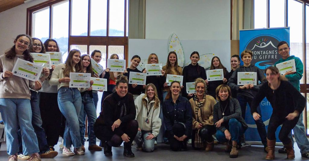 Pour la quatrième année consécutive, la Communauté de Communes des Montagnes du Giffre félicite les adolescents qui ont participé – avec enthousiasme et sérieux – à la formation “baby-sitting” organisée à l’automne, et remercie chaleureusement les professionnels des crèches et accueils de loisirs du territoire (Loupiots, P’tits Bouts, Petits Montagnards et CLAP Jacquemard) pour l’appui à l’organisation et la qualité des interventions.Les 15 nouveaux baby-sitters, avec les partenaires de l’action