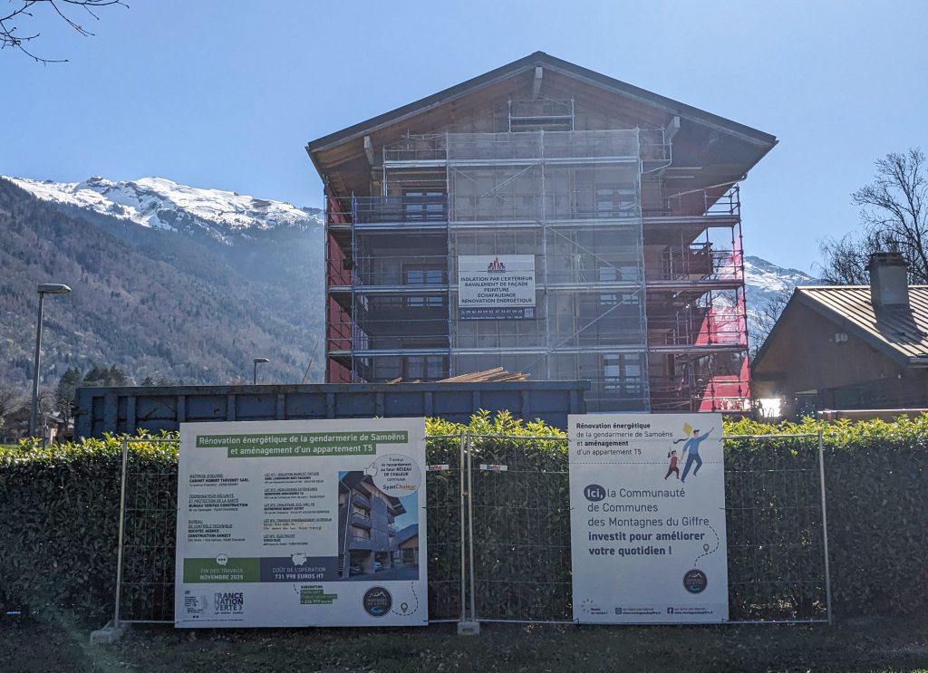 Début avril à Samoëns, la Communauté de Communes, au titre de la compétence “construction et aménagement des casernes de gendarmerie”, a engagé d’importants travaux de rénovation énergétique du bâtiment qui abrite les logements de la caserne de gendarmerie.