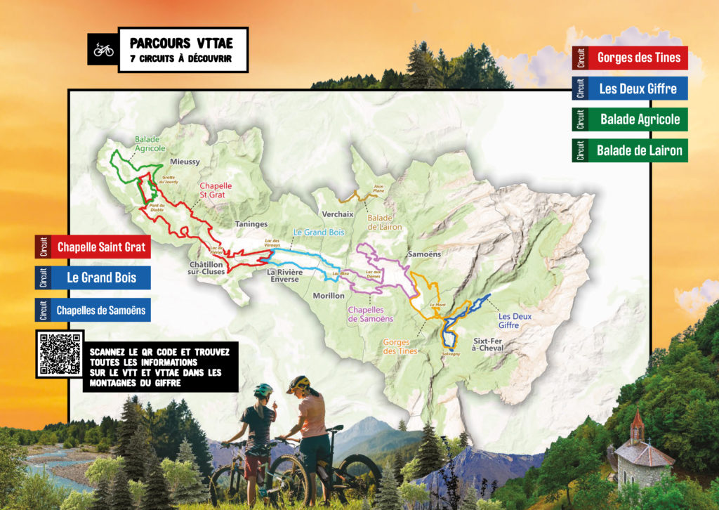 Un dépliant d’information, avec les cartes et descriptifs des parcours, ainsi que la liste des socioprofessionnels qui proposent de la location de VTT-AE, est disponible gratuitement :
