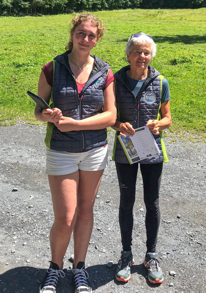 Pour la première période, du 8 au 26 juillet, ce sont ↑ Elise et Michèle ↑ qui arpentent le territoire à la rencontre des visiteurs. Toutes deux portent des vêtements de la Communauté de Communes. Si vous les croisez lors de votre promenade, merci de leur réserver un accueil cordial et de bien vouloir consacrer quelques minutes pour répondre au questionnaire !