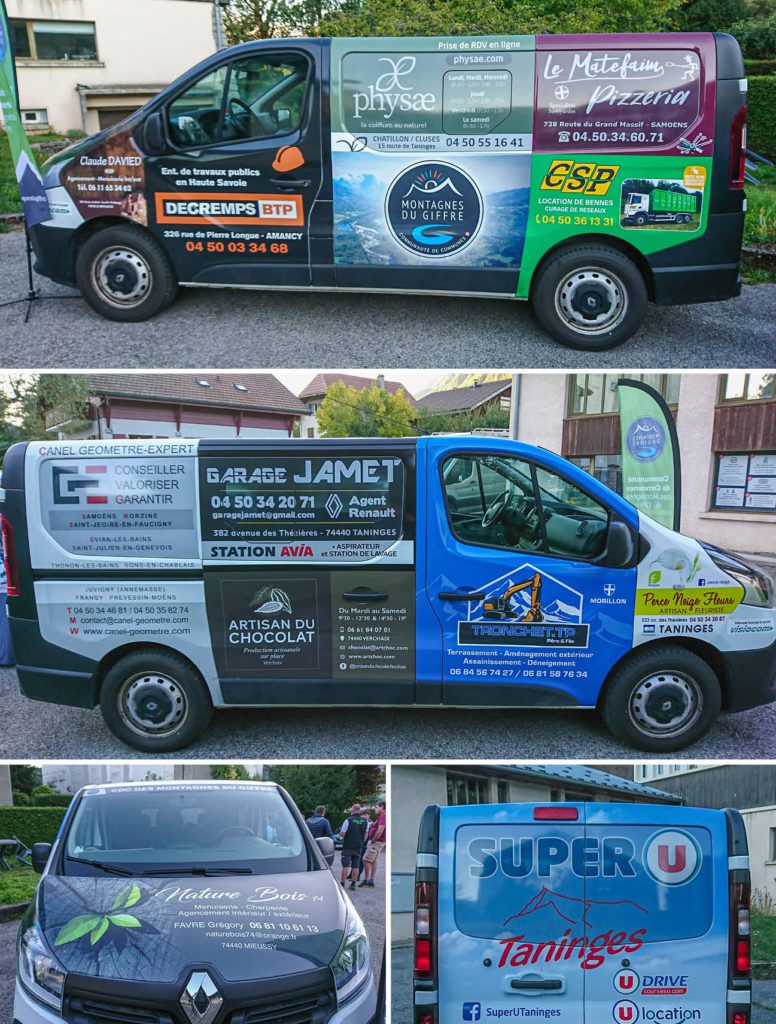 La Communauté de Communes a pris officiellement possession, ce lundi 19 septembre à Taninges, d’un minibus de neuf places, entièrement recouvert de publicités. Il s’agit d’une location sur trois ans auprès de la société Visiocom, entièrement financée par la publicité des partenaires locaux.