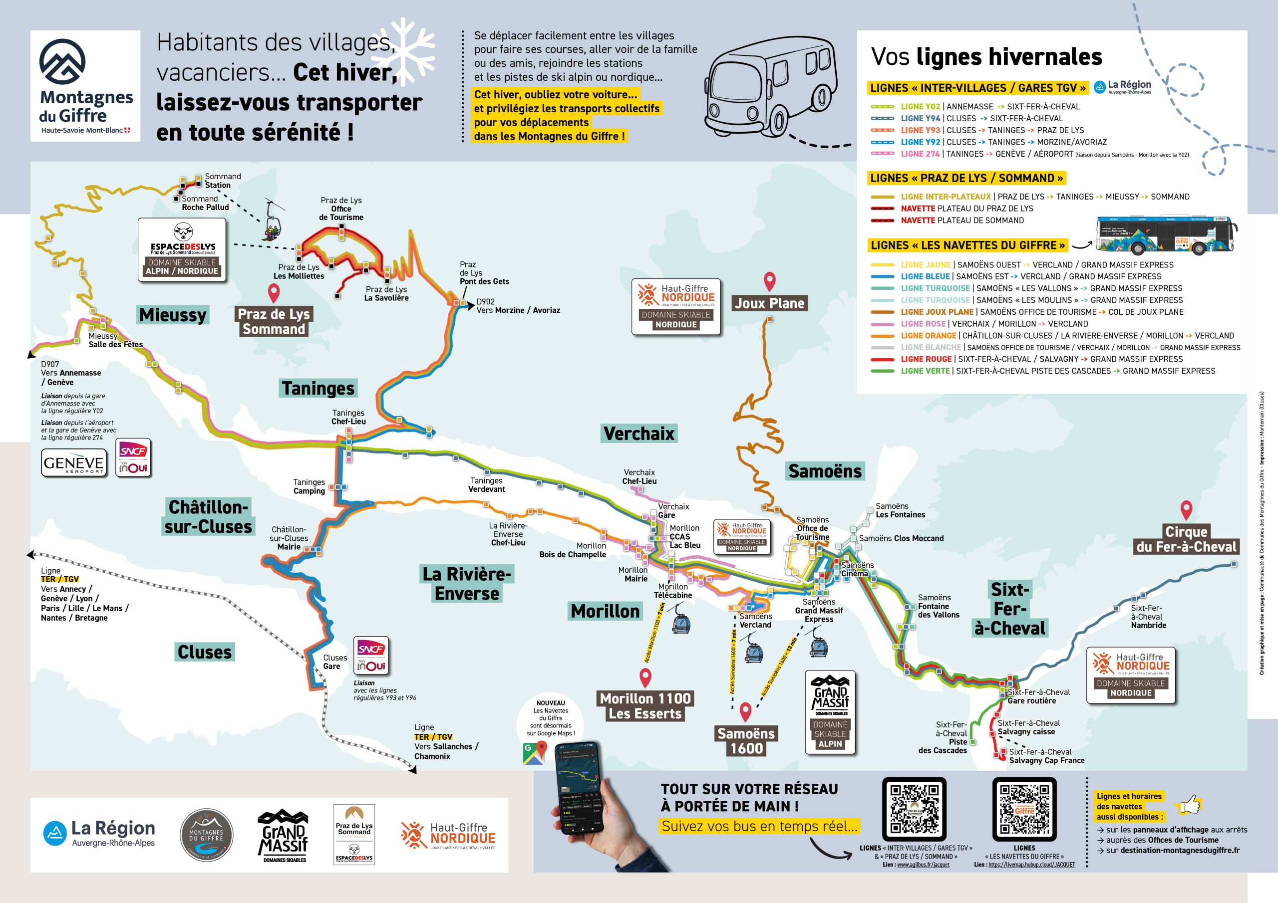 - Un réseau global de 19 lignes pour faciliter vos déplacements dans la vallée du Giffre, de Mieussy à Sixt-Fer-à-Cheval. Rejoignez facilement les domaines skiables, l’Espace des Lys et le Grand Massif, ainsi que les domaines nordiques de Joux Plane, du Cirque du Fer-à-Cheval et de Praz-de-Lys Sommand.