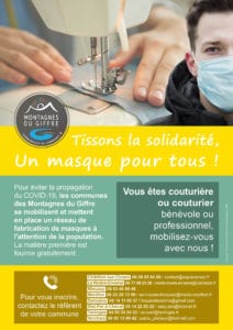 Dans la cadre de la gestion de la crise sanitaire liée au Covid19, les élus de la Communauté de Communes des Montagnes du Giffre (CCMG) lancent un grand appel à bénévoles sur le territoire, afin de rassembler des couturières et des couturiers volontaires, pour fabriquer des masques de protection, pour l’ensemble des habitants de la vallée.