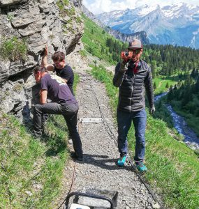 “Quand cela était possible, l’équipe a réutilisé les équipements historiques du site – les chaînes, les poteaux des mains courantes, les broches, les ancrages. Le reste du matériel a été fabriqué localement par la métallerie Coudurier à Mieussy”, explique Aurélien Mahaut, responsable du service sentiers.