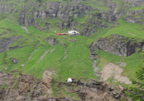 Pour le transport du matériel depuis la vallée jusqu’au Pas de Sales, et afin de réduire les coûts et le dérangement en réserve naturelle, “nous avons fait le choix de regrouper les rotations de l’hélicoptère avec le transport de la passerelle du Clos de Sales, du matériel nécessaire au balisage du vallon de Sales ou du ravitaillement du refuge éponyme”.