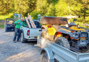 En journée, les agents du service “sentiers” portent des vestes et des tee-shirts colorés avec la mention “Montagnes du Giffre / Service sentiers” inscrite au dos. C’est une question de visibilité et de sécurité, notamment sur les chemins VTT où parfois les usagers arrivent vite. De même, les véhicules utilisées par le service (4×4, quads…) sont marqués et autorisés à circuler sur les chemins. “Il est essentiel que nos agents soient rapidement identifiés lorsqu’ils travaillent en extérieur, par les promeneurs, les propriétaires fonciers, les alpagistes, les services des mairies… notamment pour éviter les conflits d’usage”, indique la Communauté de Communes.