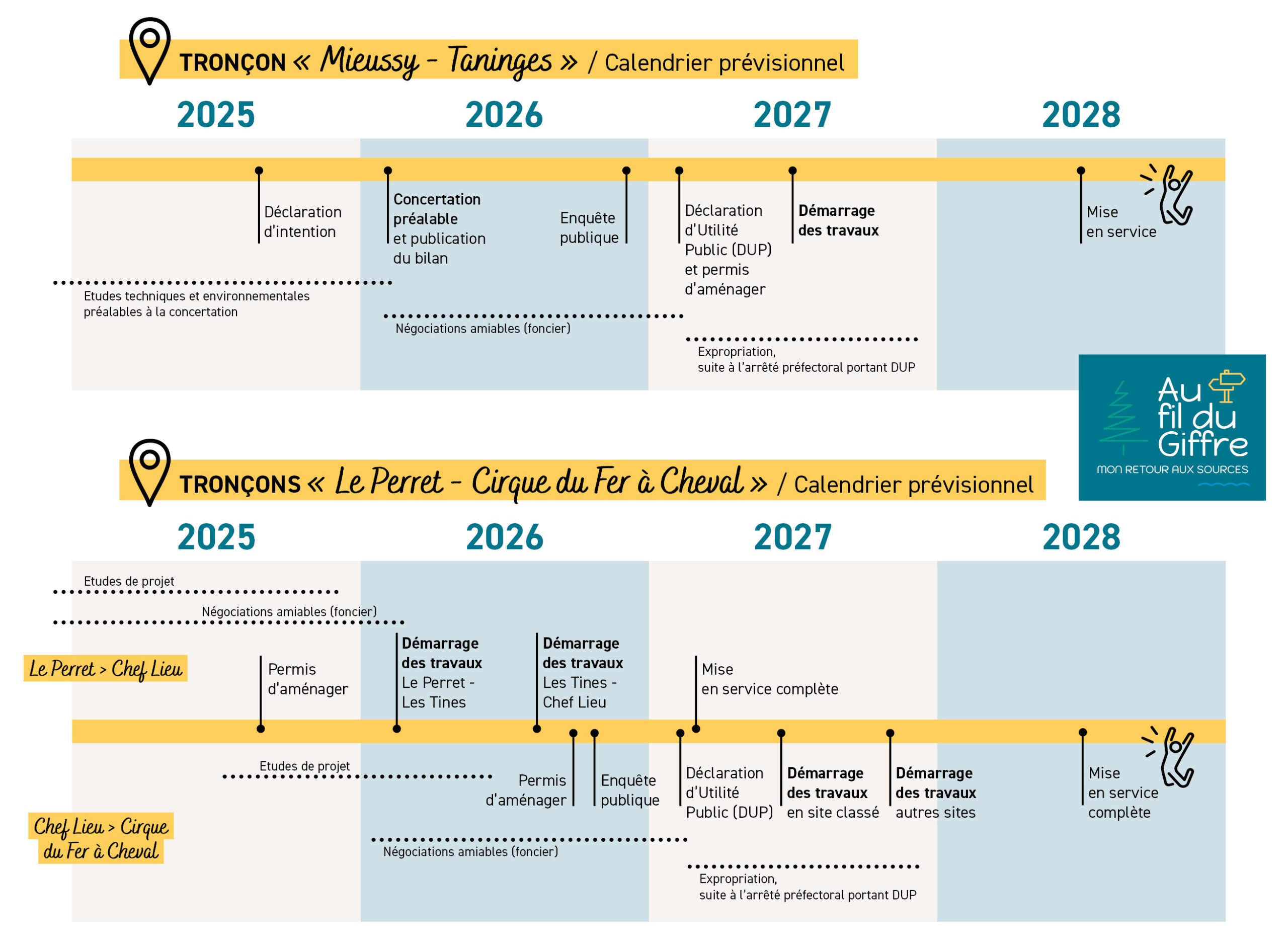 S’il reste plusieurs étapes à franchir d’ici le premier “coup de pelle”, les élus de la Communauté de Communes projettent néanmoins un lancement des travaux au printemps prochain pour le tronçon entre hameau du Perret et le centre-bourg de Sixt-Fer-à-Cheval. Les travaux entre Mieussy et Taninges pourraient quant à eux débuter début 2027.