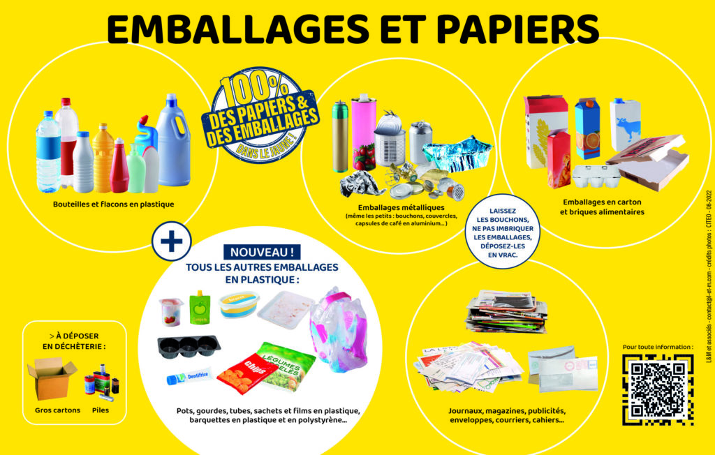 Conteneur jaune = Emballages et papiers