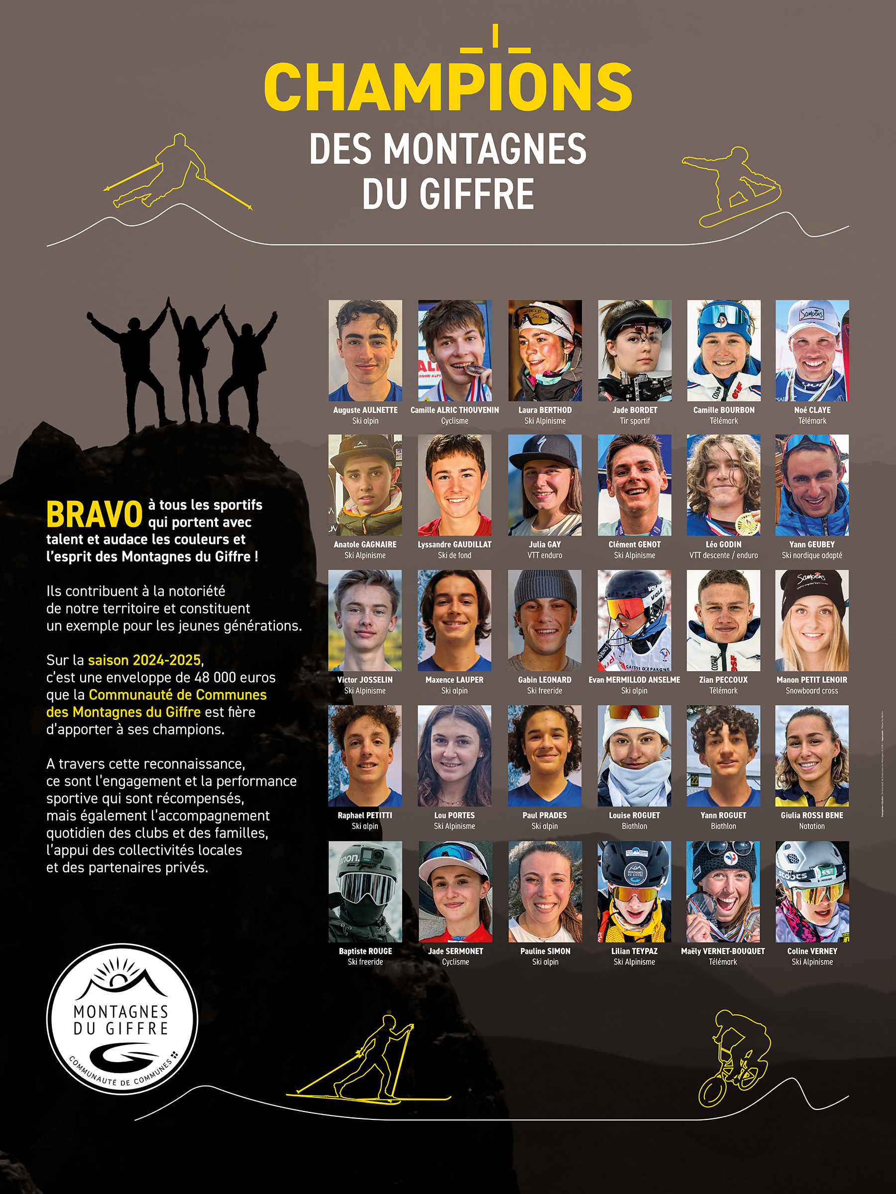 Concrètement, une aide financière est ainsi attribuée annuellement : une part fixe versée en début d’année et une part variable versée à la fin de la saison sportive en fonction des résultats obtenus. Cette aide apporte une manne supplémentaire permettant de prendre en charge des déplacements, d’acquérir du matériel… “en somme, de faciliter la vie sportive de nos champions afin qu’ils portent les couleurs et l’esprit des Montagnes du Giffre dans leurs pratiques respectives”.